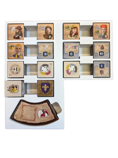 🧱 Perfect fit for all Tiletum components 📦 Compact trays that fit neatly inside the original game box ⚡ Quick setup thanks to dedicated sections for each component 🖨️ High-quality 3D printing for strength and precision 🔄 Clear engraved icons for easy identification 💪 Strong and durable structure to protect your components 🔒 Supports sleeved cards 🃏 Supports unsleeved cards